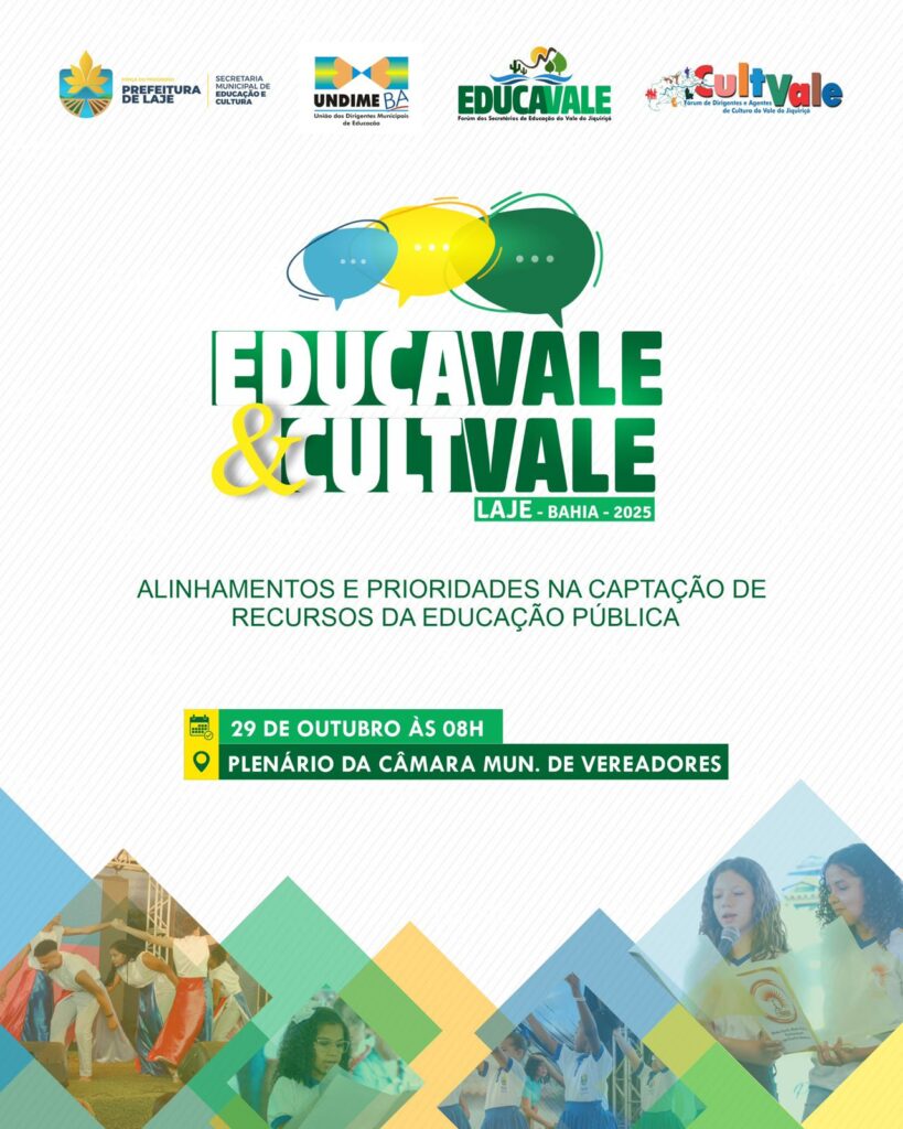 A Secretaria Municipal de Educação de Laje, sedia nesta quarta-feira (29) representantes das secretarias municipais de educação, de cultura e a novidade, a participação também de prefeitos para o Encontro dos Fóruns Territoriais de Educação (EducaVale) e de Cultura (CultVale). O evento tem como tema principal “Alinhamentos e Prioridades na Captação de Recursos da Educação Pública”, um importante momento de diálogo, integração e fortalecimento das políticas públicas no município.