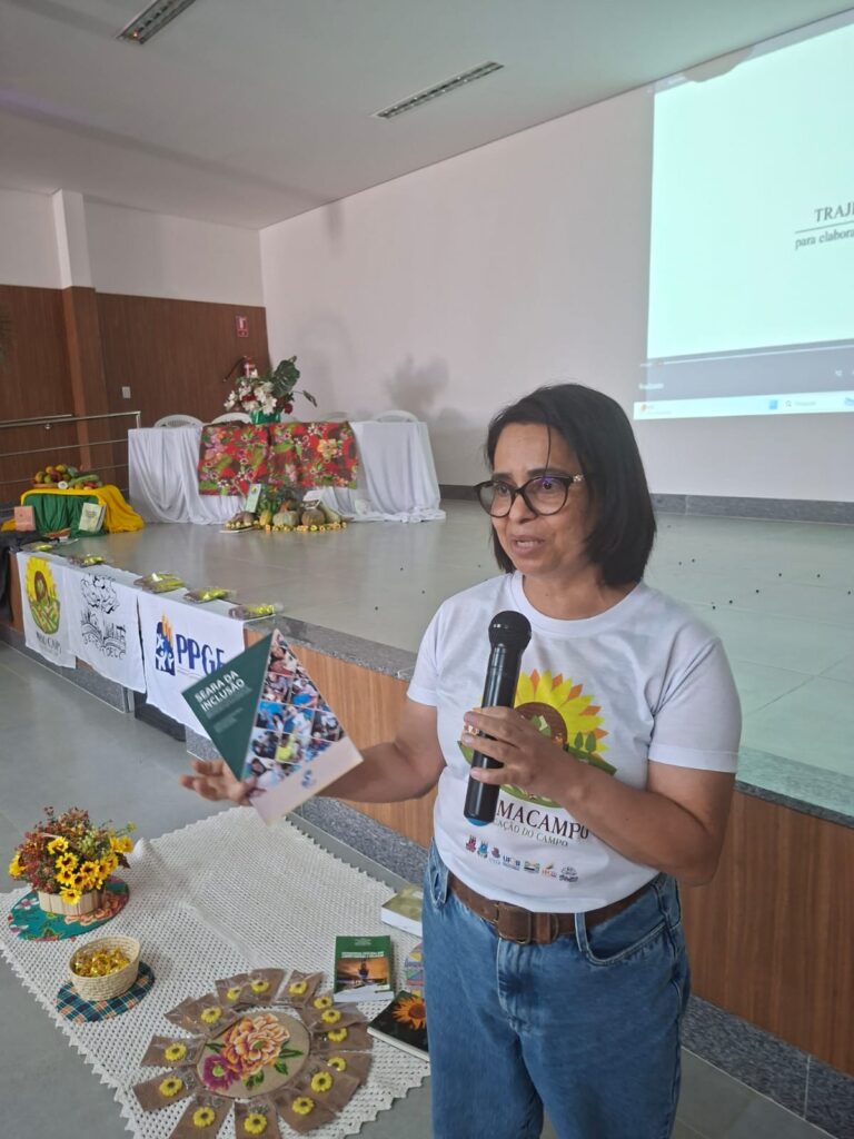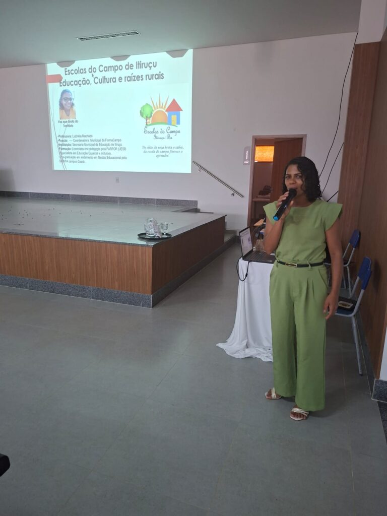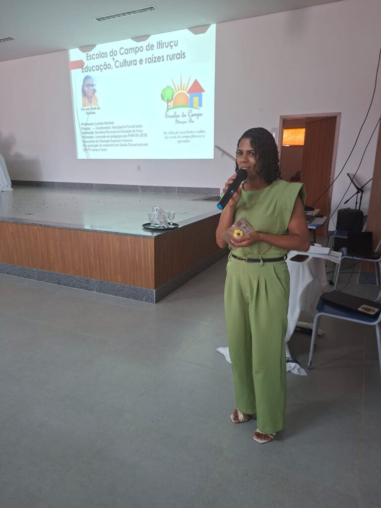 A professora Luzineia Vaz, de Itiruçu, também apresentou o projeto Meu Lugar, que busca fortalecer a identidade campesina dos estudantes das Escolas do Campo do município. O projeto visa valorizar a cultura local e a história das comunidades rurais, promovendo o orgulho e o pertencimento dos alunos ao seu contexto territorial.