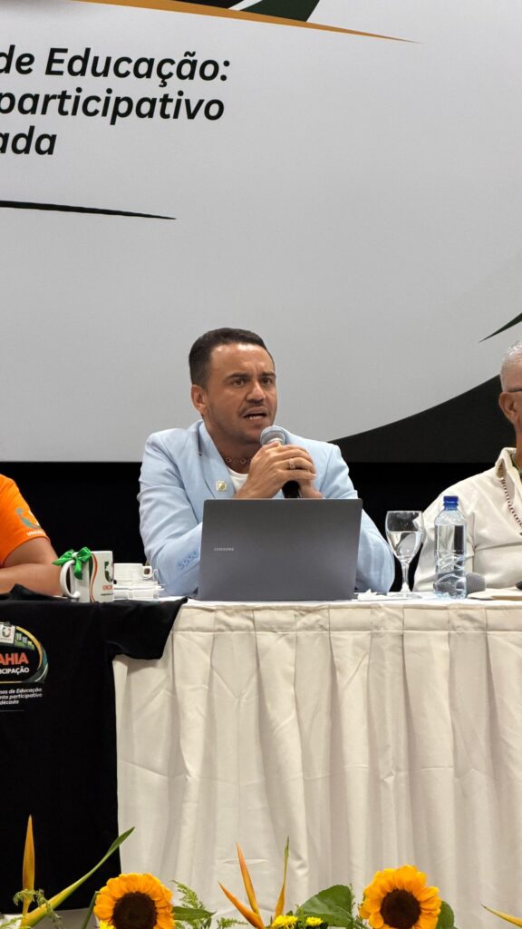O presidente da União dos Dirigentes Municipais de Educação da Bahia (Undime-BA), Anderson Passos, Dirigente Municipal de Educação de Aratuípe, no Baixo Sul, participou nesta sexta-feira (27) de importantes discussões durante o Seminário da UNCME Bahia e o XXVIII Encontro dos Conselhos de Educação.