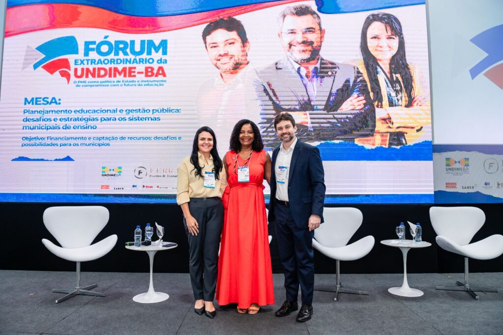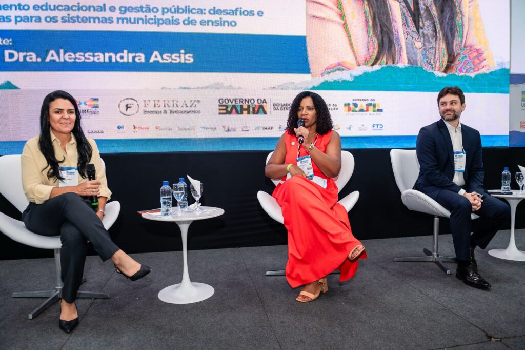 Realizada no primeiro dia do evento, a mesa contou com a participação de Gregório Grisa, secretário de Articulação Intersetorial e com os Sistemas de Ensino (SASE), Gilson Araújo, pesquisador e Auditor de Controle Externo e Alessandra Assis, integrante do FEEBA, que compartilharam experiências e análises sobre os principais desafios enfrentados pelas redes municipais. Entre os pontos debatidos, estiveram o planejamento estratégico como ferramenta essencial para a organização das políticas educacionais e a gestão eficiente de recursos públicos.