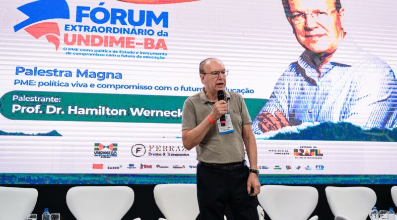 A palestra magna “PME: política viva e compromisso com o futuro da educação” marcou a abertura do Fórum Extraordinário da Undime Bahia, realizado entre os dias 7 e 9 de março, em Salvador. Ministrada pelo educador Hamilton Werneck, a apresentação trouxe reflexões centrais sobre o papel do Plano Municipal de Educação (PME) na construção de políticas públicas consistentes e duradouras.