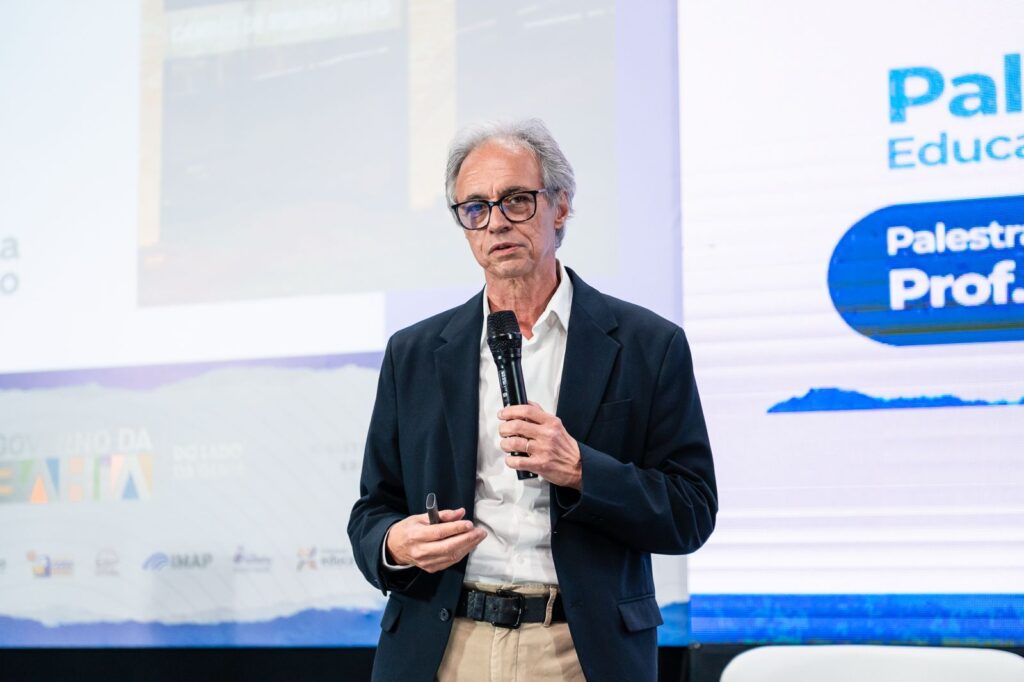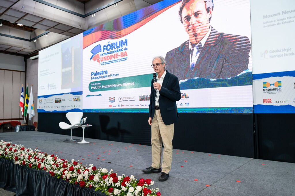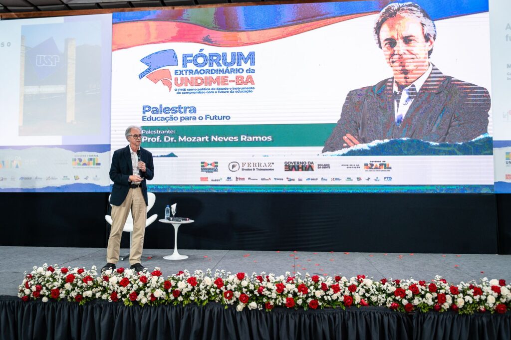 O professor doutor Mozart Neves Ramos conduziu a palestra “Educação para o Futuro”. Reconhecido nacionalmente por sua atuação na área educacional, o especialista deve apresentou uma análise sobre inovação, qualidade do ensino e as transformações necessárias para preparar as novas gerações em um cenário cada vez mais dinâmico.