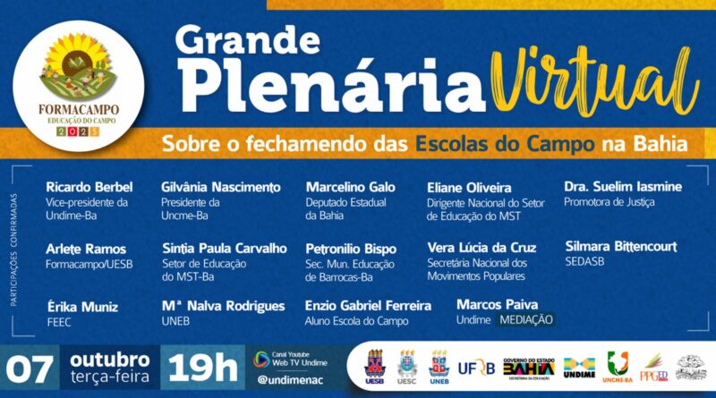 Web TV Undime Bahia transmite nesta terça-feira Plenária Virtual refletindo sobre os fechamento das escolas do campo